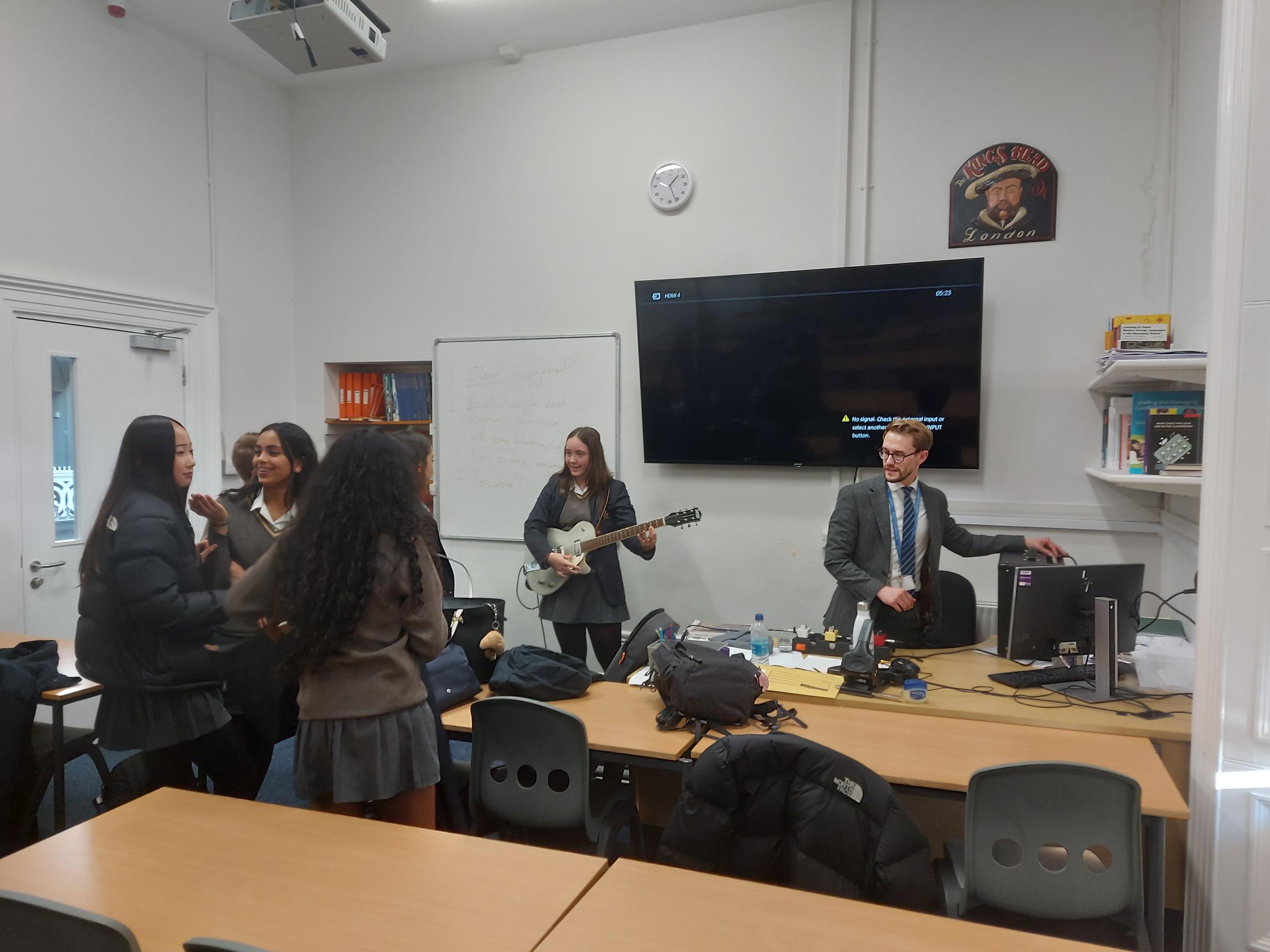 However, being part of the Scholarship Programme, there was plenty about the evolution of the electric guitar and the science behind its operation. Furthermore, there was a historical theme to the talk, as Dr Davies tracked the development of the guitar via some of the most legendary proponents of the art, such as Jimi Hendrix. The session was greatly enjoyed by all, especially those who had a go on the guitar at the end!
