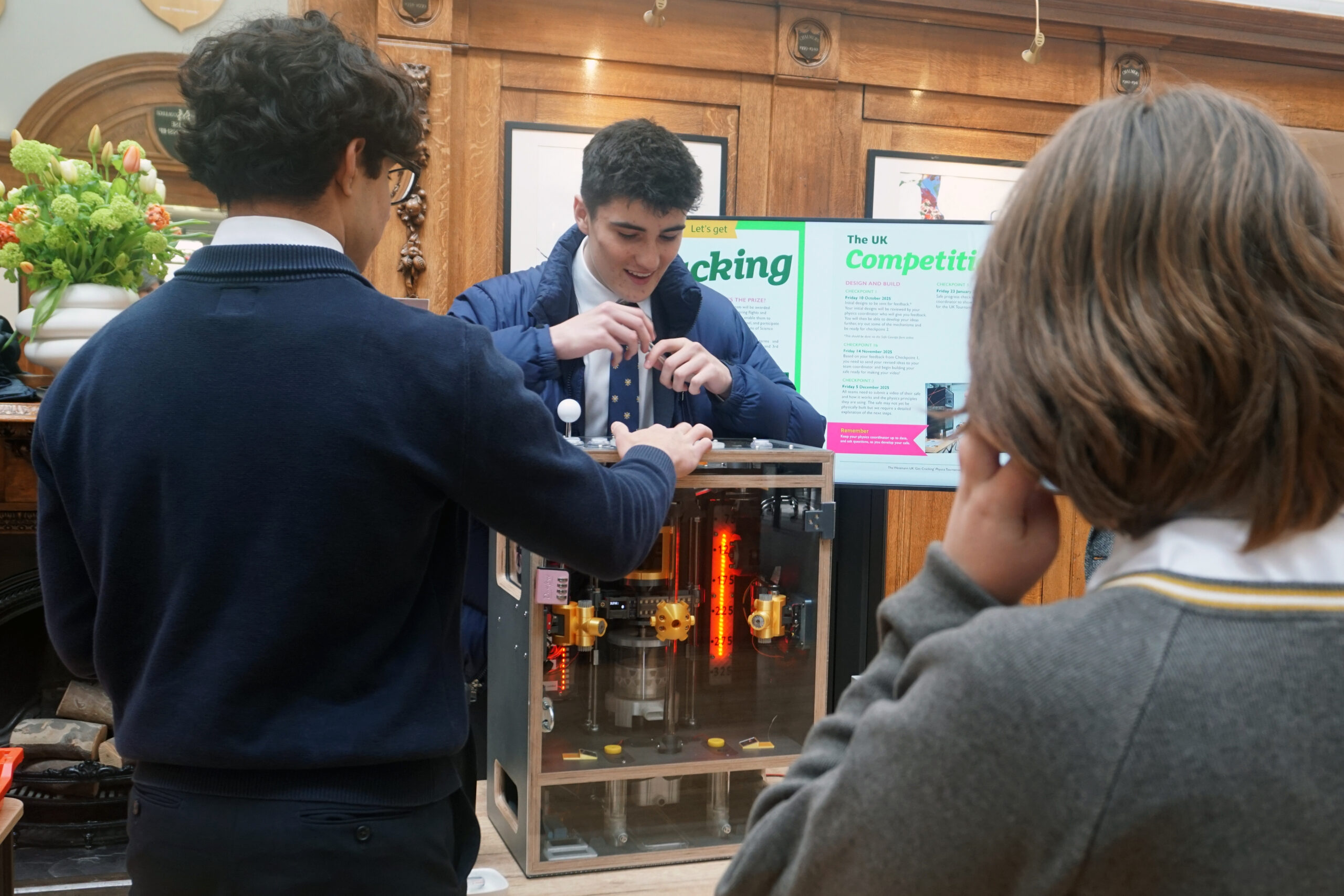 Fresh from securing a top ten finish in the national competition, the Lower Sixth showcased their meticulously engineered safes in Central Hall. Students queued up throughout lunchtime to test their logic — and patience — trying to crack the ingenious mechanisms.