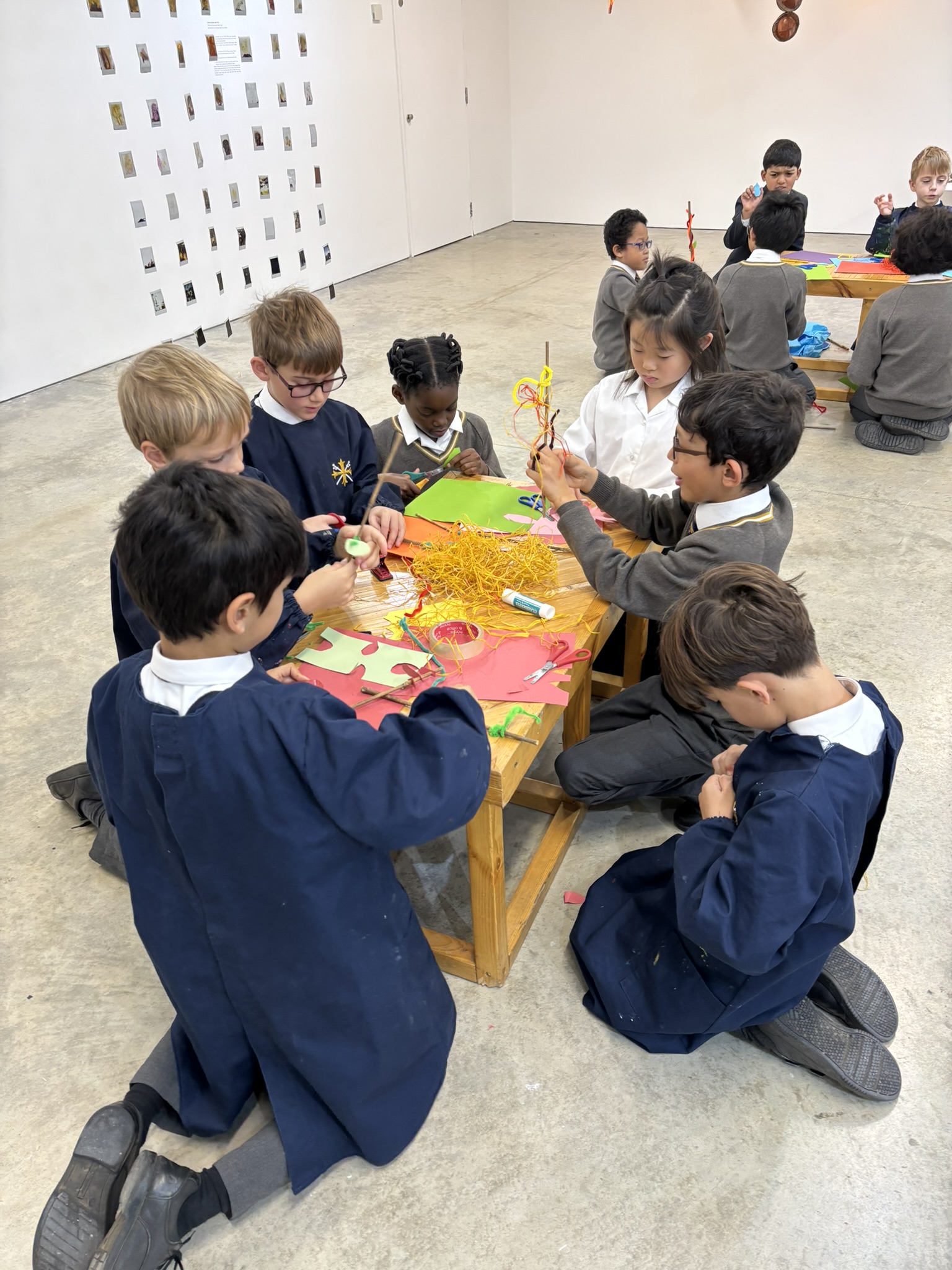 Each session began with a 15-minute guided tour of the exhibition, allowing students to engage with the artwork and draw inspiration from its intricate forms. Following the tour, pupils transformed their ideas into floral-like sculptures using paper, string and pipe cleaners.