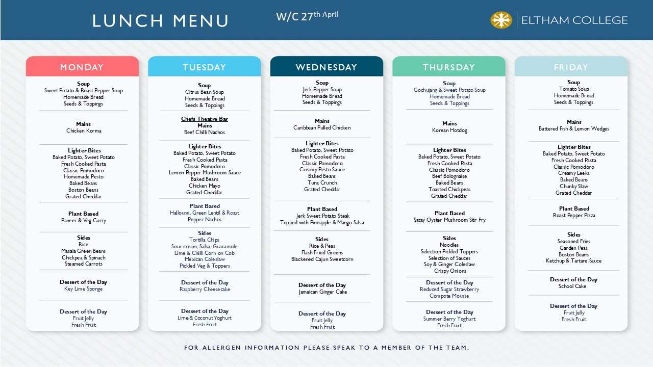 Eltham College Lunch Menu