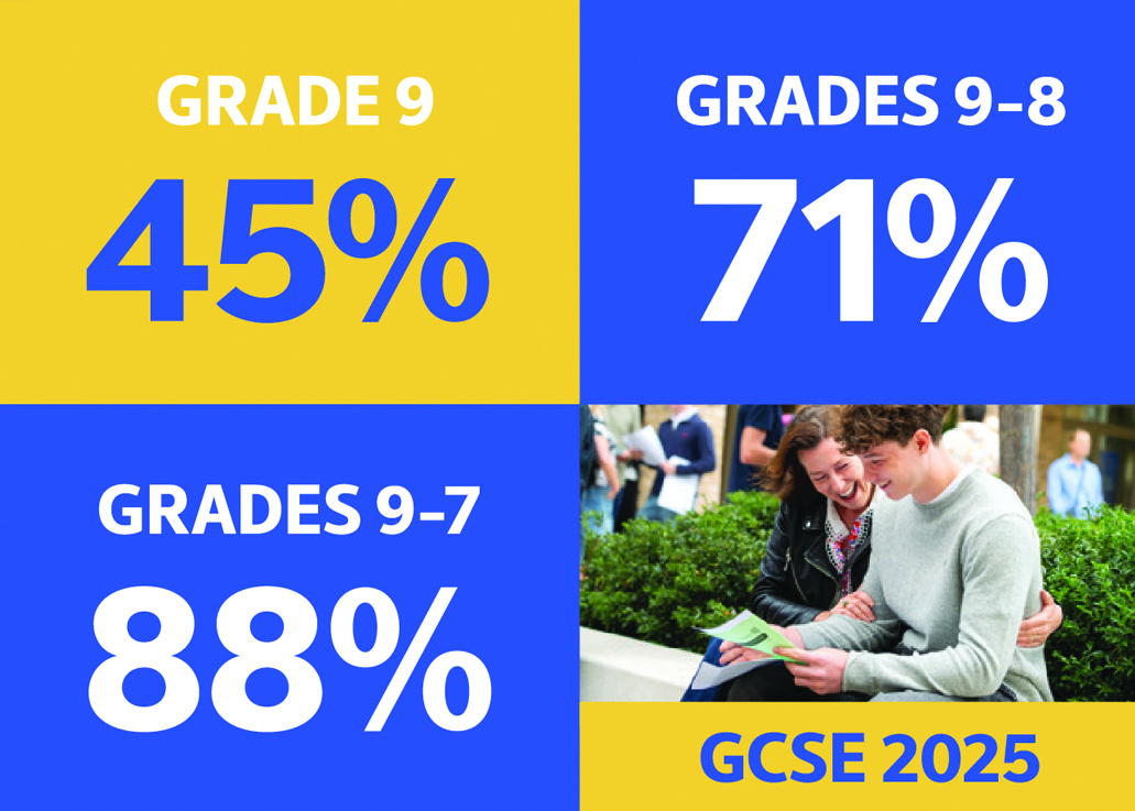 2025 brought a record haul of the very top grades at GCSE, with 71% of results reaching the all-important grade 9-8 band (A* under the previous system). Up four percentage points on last year’s performance and 12 points against 2023, this is the school’s highest-ever tally outside Covid times.